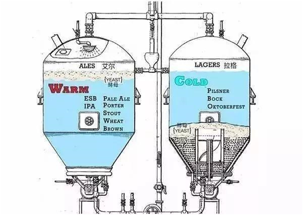 發酵罐成熟罐:在冷卻的麥汁中加入啤酒酵母使其發酵麥汁中的糖分分解為酒精和二氧化碳,大約一星期后,即可生成嫩啤酒,然后再經過幾十天使其成熟。