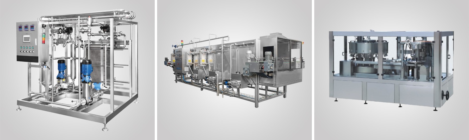 巴氏殺菌機(jī): 板框式瞬時殺菌機(jī)用于灌裝前對啤酒滅菌;隧道式巴氏殺菌機(jī)用于灌瓶后對瓶、聽進(jìn)行滅菌;